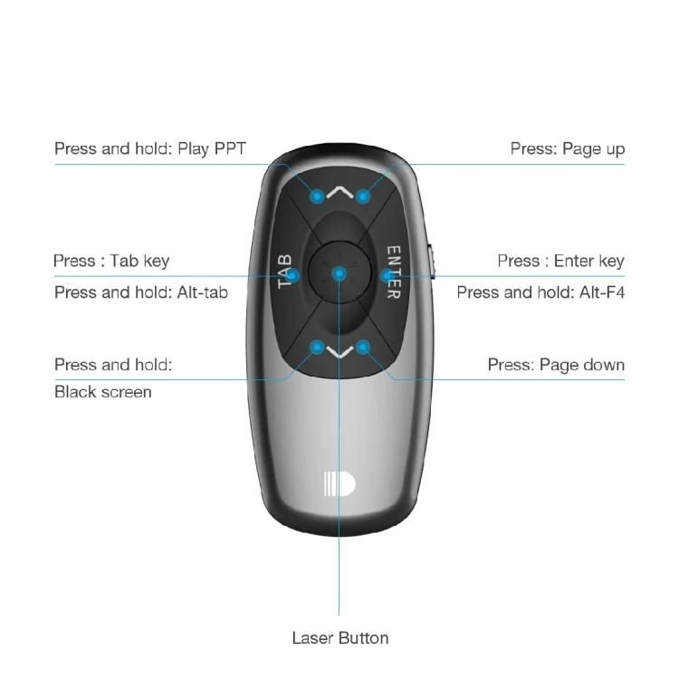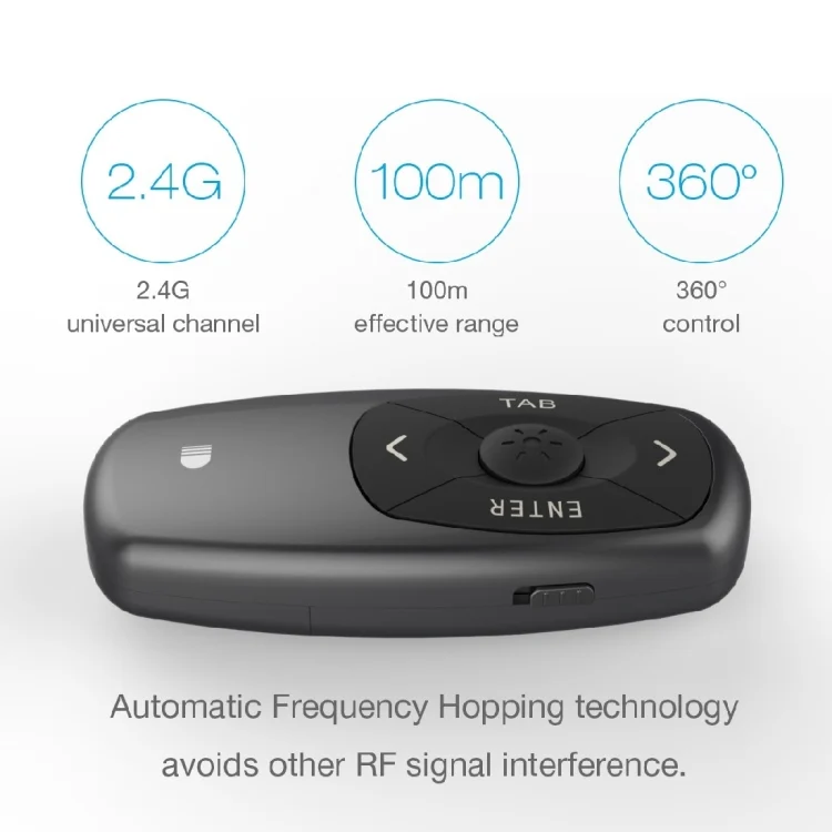 1. Mini Rechargeable Wireless Presenter. It features ergonomic buttons for comfortable operation. Design with a compact size, easy to use and carry everywhere.