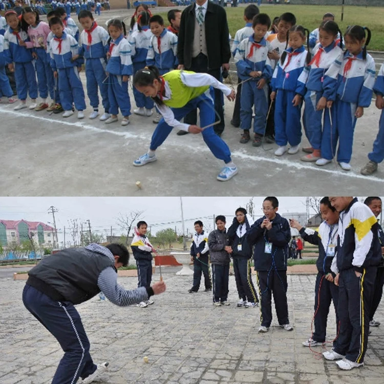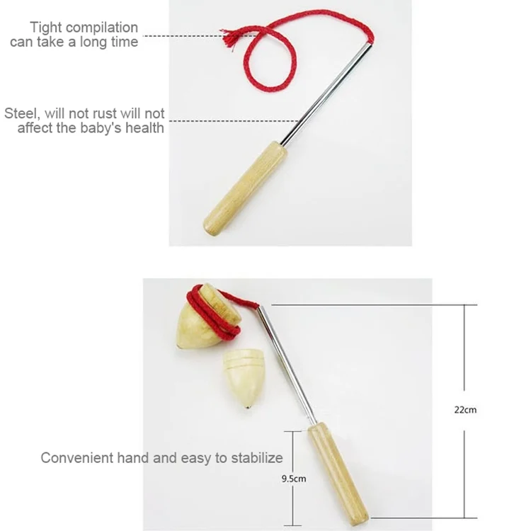 Children Outdoor Fitness Wooden Spinning Toy Vintage Spin Whipping Top with String