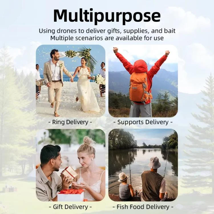 1. Use the drone to deliver gifts, supplies, cast bait, etc., a variety of scenarios can be used
