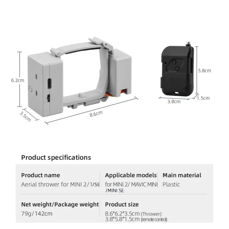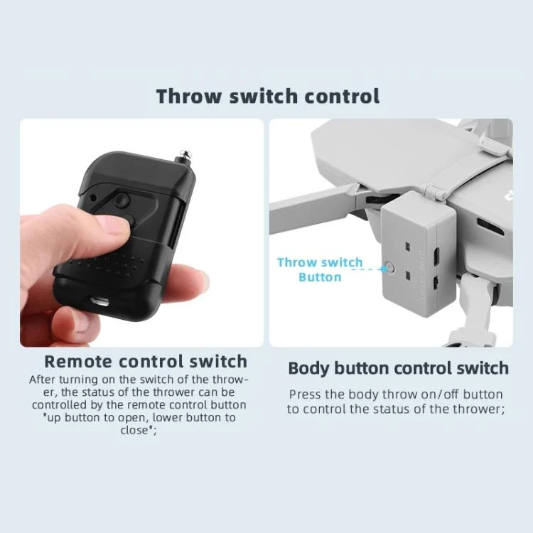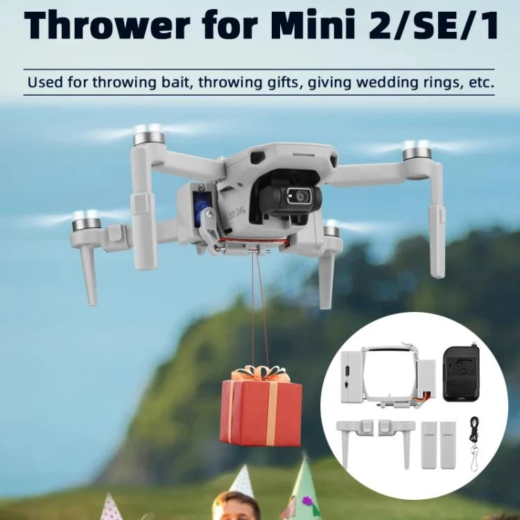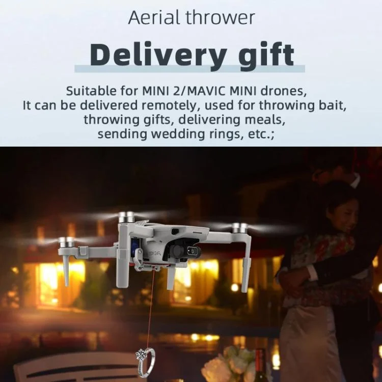 1. Suitable for Mini 2 / Mavic Mini drones, can be remotely dispatched for advertising, throwing bait, throwing gifts, delivering meals, sending wedding rings, etc.;