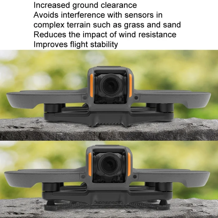 4. Increase ground clearance to avoid the interference of grass, sand and other complex terrain on the sensor, reduce the impact of wind resistance, improve flight stability