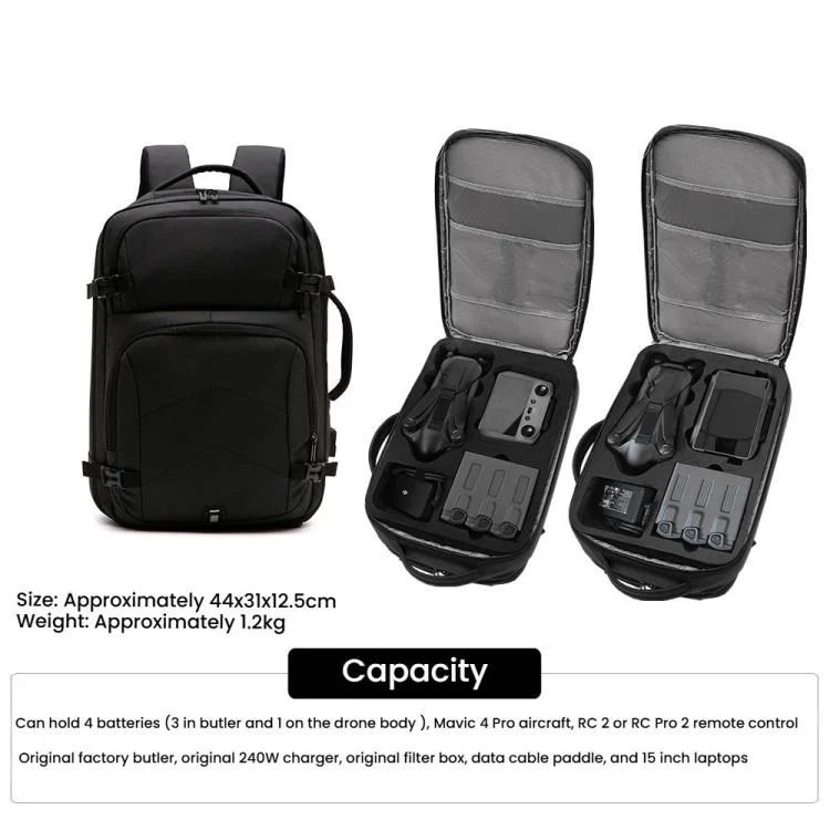 2. Large capacity, can hold the drone, remote control (RC 2/RC Pro 2), battery, original 240W charger, original battery butler, original filter box, joystick, data cable, propeller, etc.