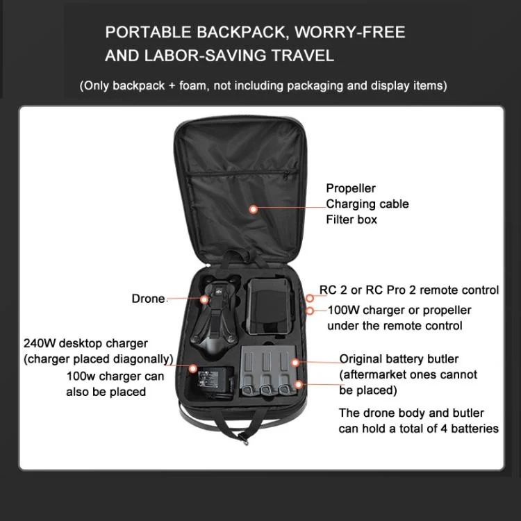 8. Spacious Organized Storage: Holds: Drone body, RC Pro 2/RC 2 remote, original battery hub (third-party incompatible), 4 batteries, 240W charger, propellers, cables, and more.