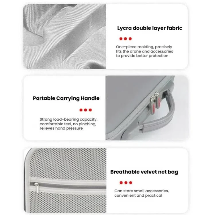 2. Custom-molded grooves based on actual device dimensions ensure secure placement and scratch prevention. Dedicated compartments and mesh pockets keep propellers, cables, and accessories organized.
