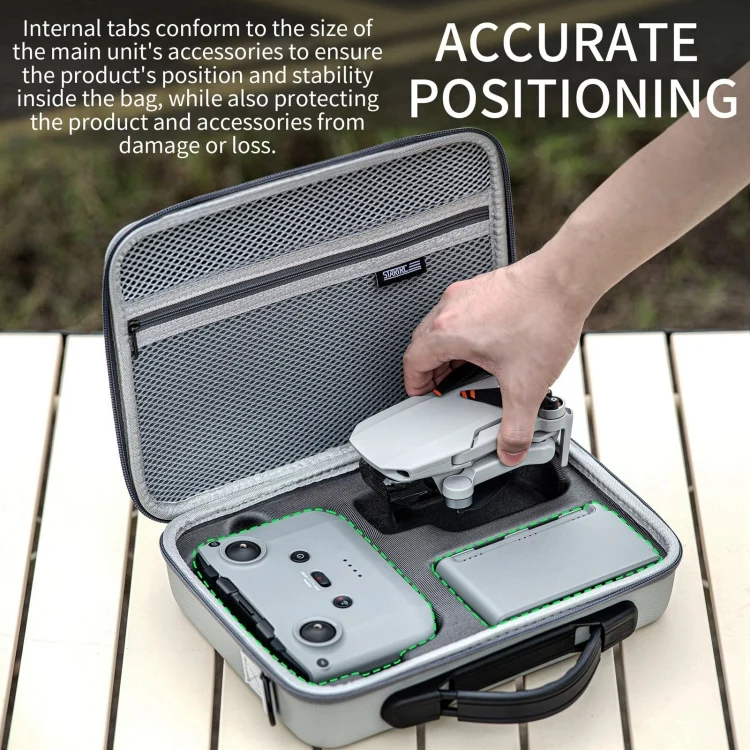 1. Strong compatibility. This storage bag is suitable for DJI Mini 2 / Mini 2 SE / Mini 4K. The remote control position is compatible with RC-N1 and RC-N2. It can store three-battery two-way charging butlers. The upper net pocket can be used as a custom space to store some related small accessories, such as charging cables, charging heads, tablets, etc.