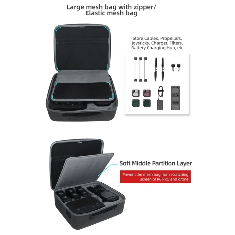 5. Visible large-capacity zipper mesh bag, which can store accessories such as adapter cables, propellers, rockers, etc.