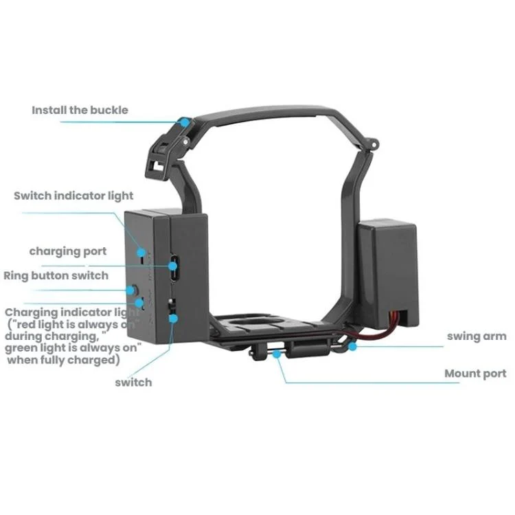 14. Note: “The red light is always on” during charging, “The green light is always on” full charge, and the red light will flash a few times when the parabolic is turned on and used normally, and then “The red light is always on”