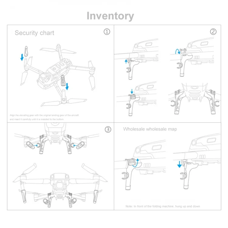 2. Increase the landing gear to effectively avoid dirt on the bottom surface of the fuselage or damage to the gimbal during takeoff and landing.