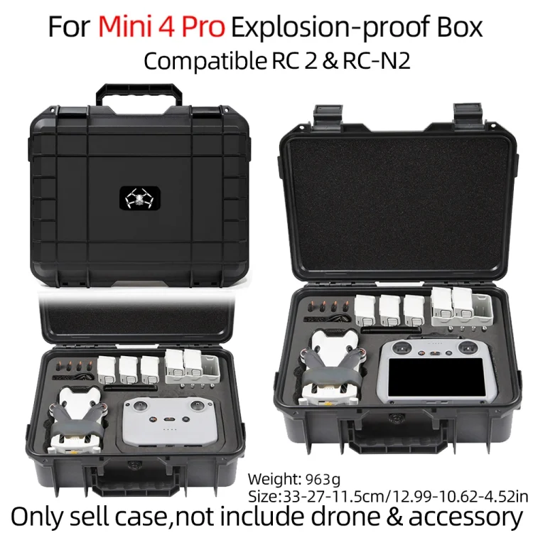 1. Specially designed drone explosion-proof storage box for DJI Mini 4 Pro /Mini 3 Pro, hard shell material, shockproof inner support, accurate fit to protect the equipment