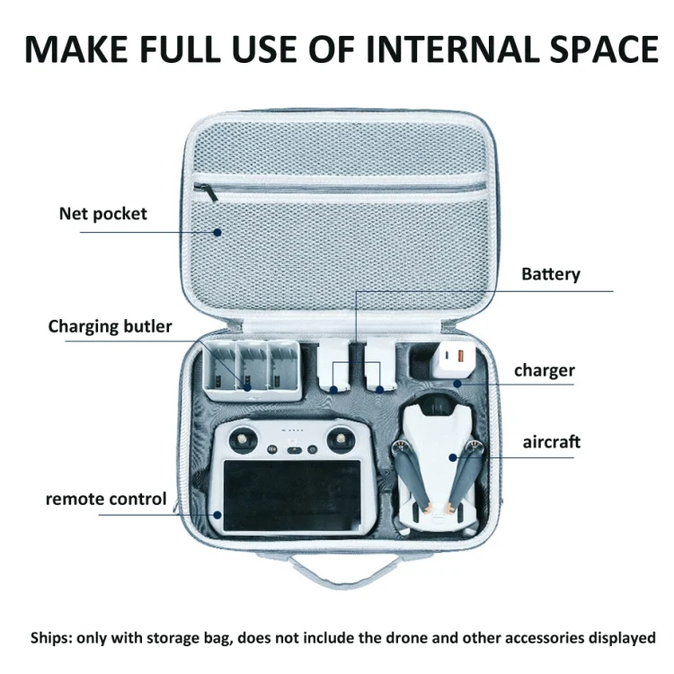 3. The internal space is fully utilized and can store the body, remote control, batteries, charging butler, data cables, paddles and other accessories.