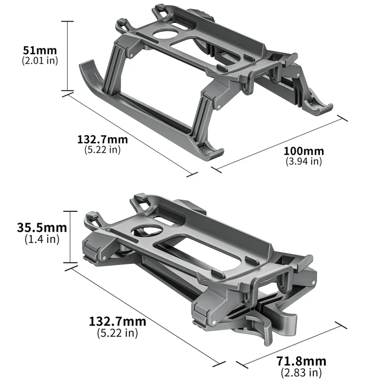 2. Improved Ground Clearance: This heightening tripod increases the distance between the drone and the ground by 20mm. It reduces impact during takeoff or landing on uneven surfaces, helping the drone land smoothly while preventing dirt or debris from damaging the body, gimbal, or propellers.