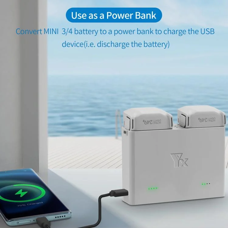 4. The battery can be discharged and used as a power bank to charge USB external device remote controllers or mobile phones