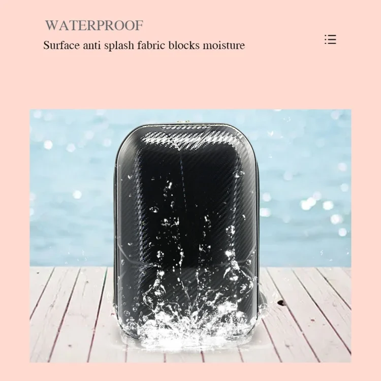 1. Hard shell ABS+PC film (surface carbon fiber texture, scratch-resistant), the fabric part is made of gray waterproof Oxford cloth, the inner liner IXPE pearl cotton has good shock absorption effect and enhanced resilience.