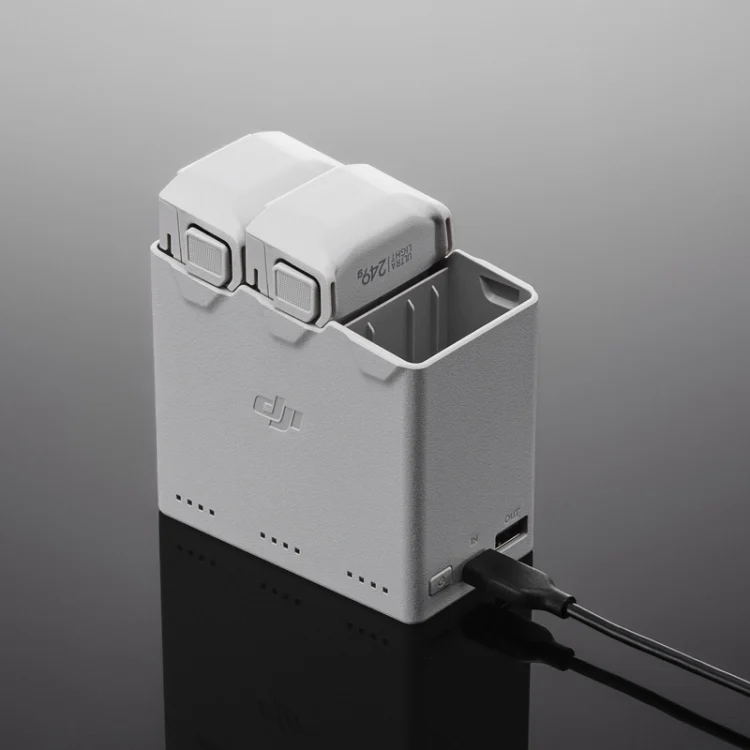 1. The Two-Way Charging Hub can charge the remote controller and three batteries in sequence. It can also be used as a mobile power source and store batteries for convenient carrying.