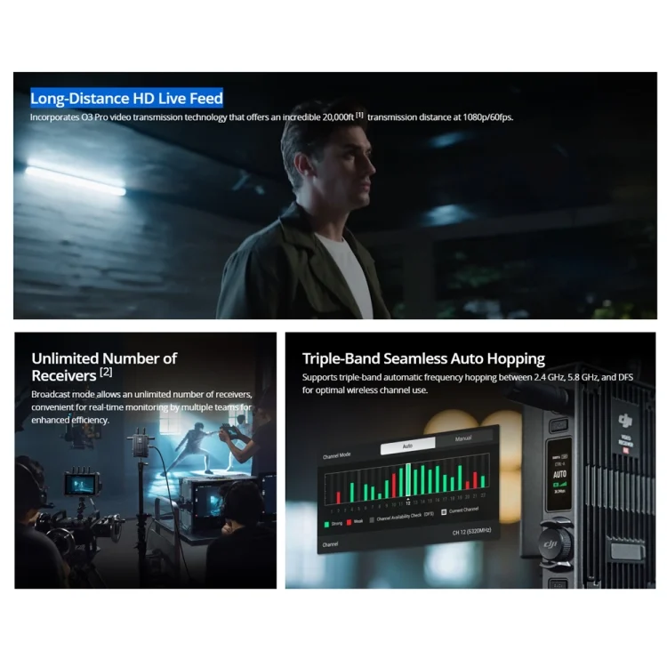 1. Long-Distance HD Live Feed:Incorporates O3 Pro video transmission technology that offers an incredible 20,000ft transmission distance at 1080p/60fps.