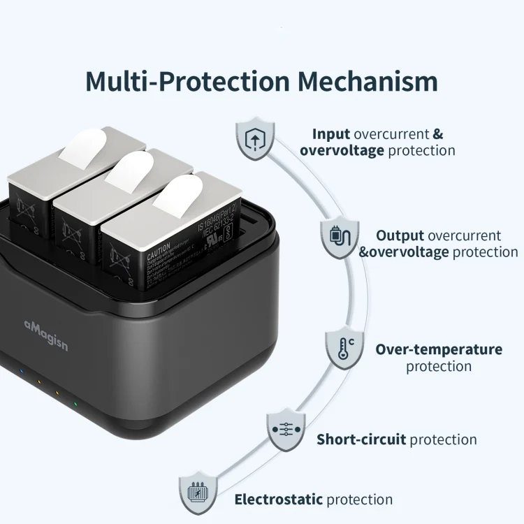 5. Multi-protection, safe and secure, over-current/over-voltage/over-temperature/short-circuit/electrostatic protection
