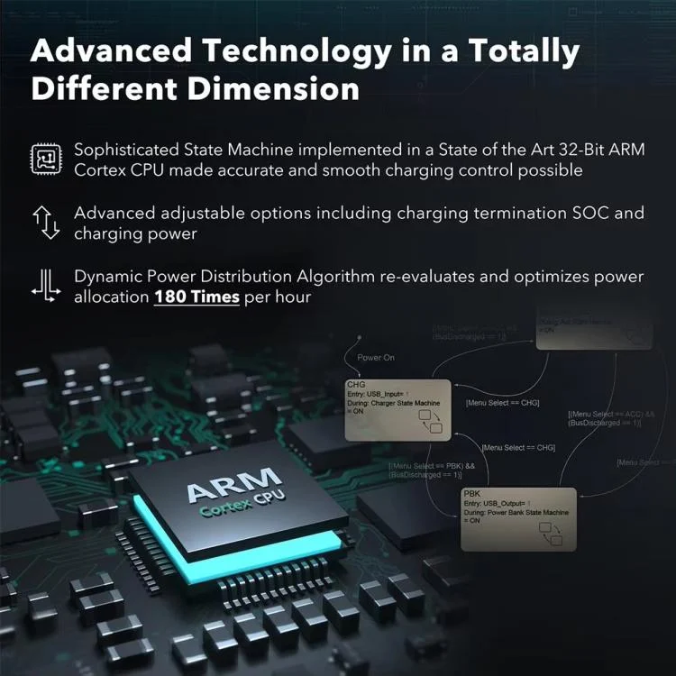 4. Built-in high-precision charging chips x3; achieving ±8mV charging voltage accuracy (charging voltage accuracy is crucial for battery life, safety and user experience).