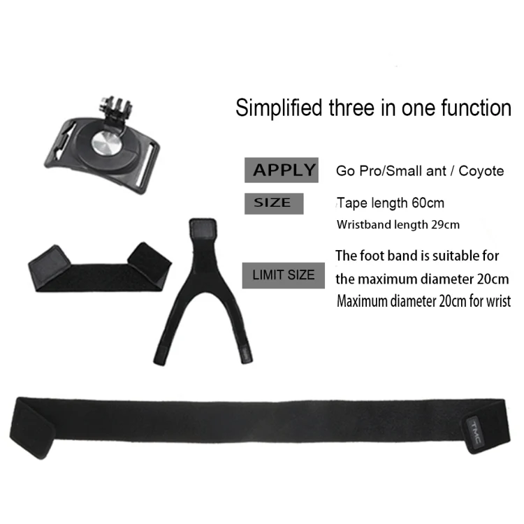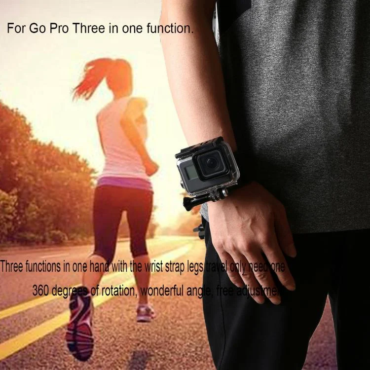 GP278 3 in 1 Hand Wrist Arm Leg Straps 360-degree Rotation Mount for GoPro, Insta360, DJI and Other Action Cameras(Black)