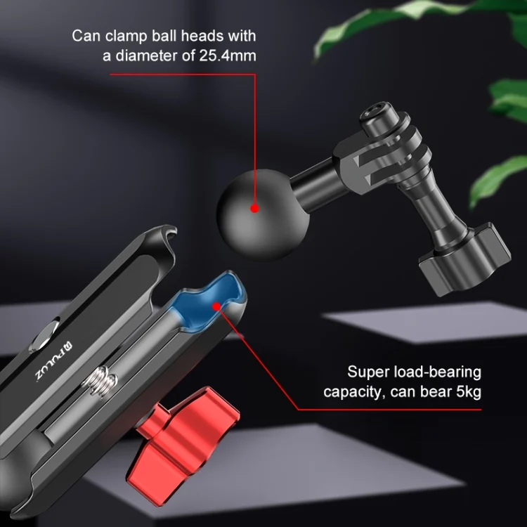 4. Easy to use: Multi-functional double ball adapter only needs to tighten the middle knob, and the ball heads of all connecting parts can be fixed at the same time. And includes an extra elastic knob for easy removal of photography accessories.
