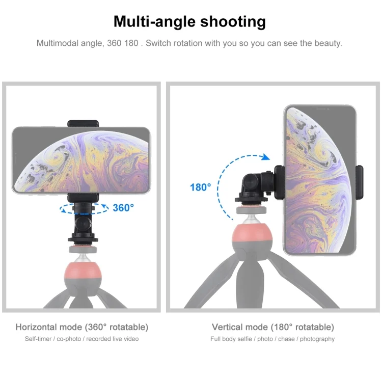 PULUZ 1/4 inch Screw Thread Cold Shoe Tripod Mount Adapter with Phone Clamp