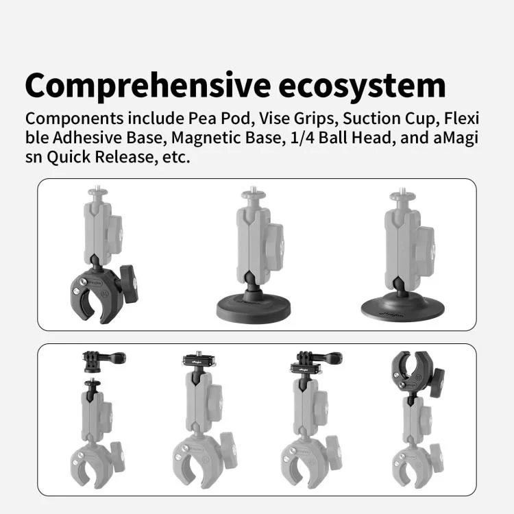 aMagisn Metal Arm Clamp Magnetic Base with 1/4-inch Ball Head For Insta360, DJI, GoPro Cameras