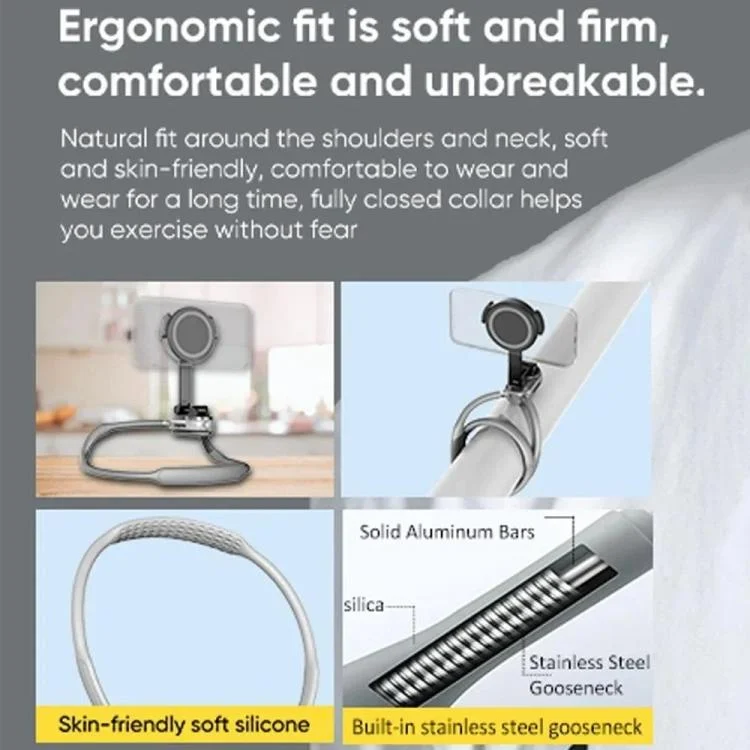 1. 360 Degree Adjustable Design:The neck-mounted phone holder features a 360 degree adjustable design, allowing for flexible positioning and optimal viewing angles for first-person perspective video recording.