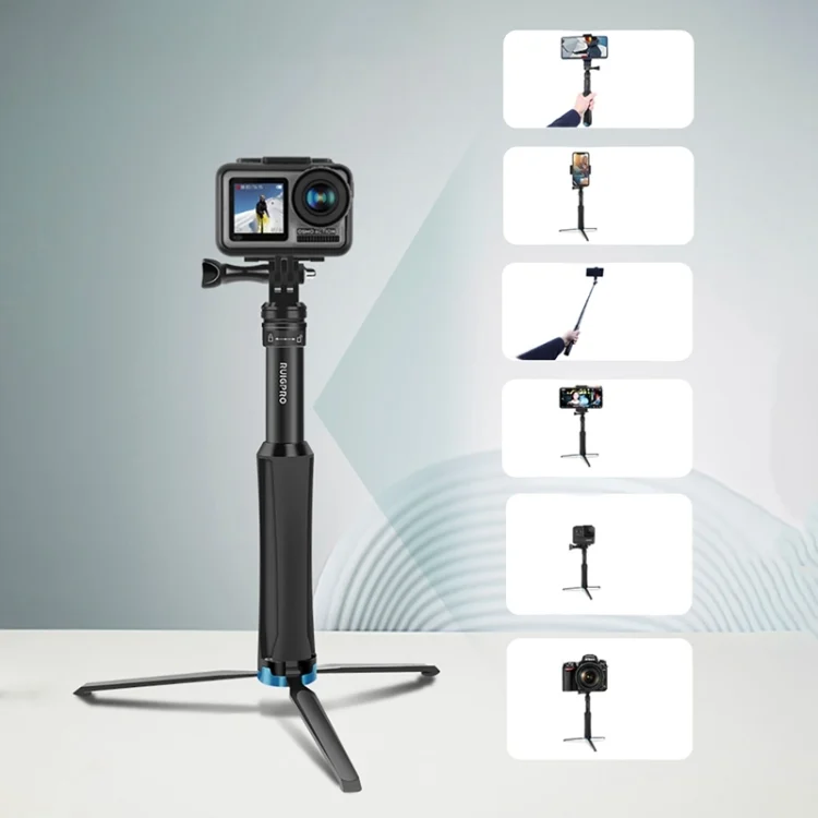 RUIGPRO One-piece Handheld Tripod Selfie Stick Telescopic Monopod Mount for GoPro, Insta360, DJI and Other Action Cameras