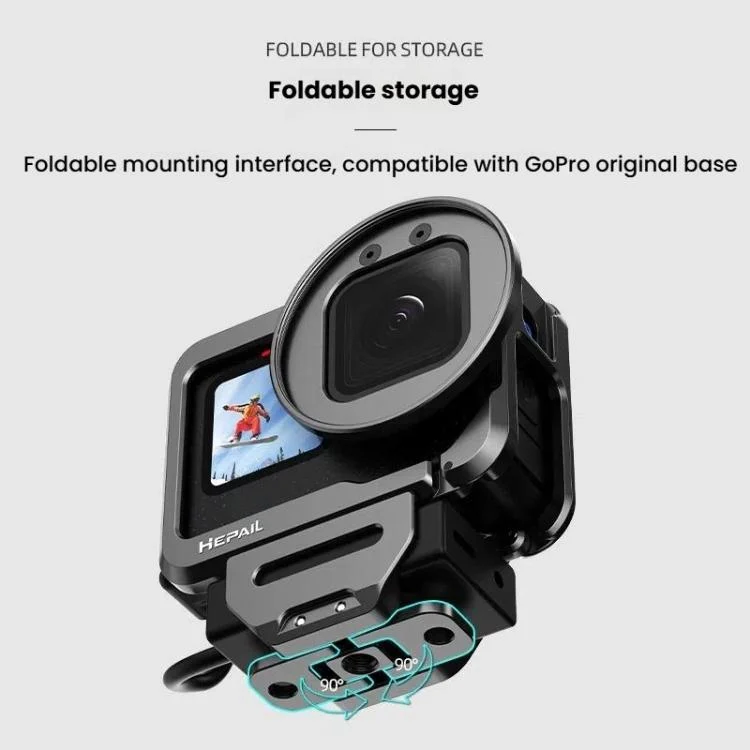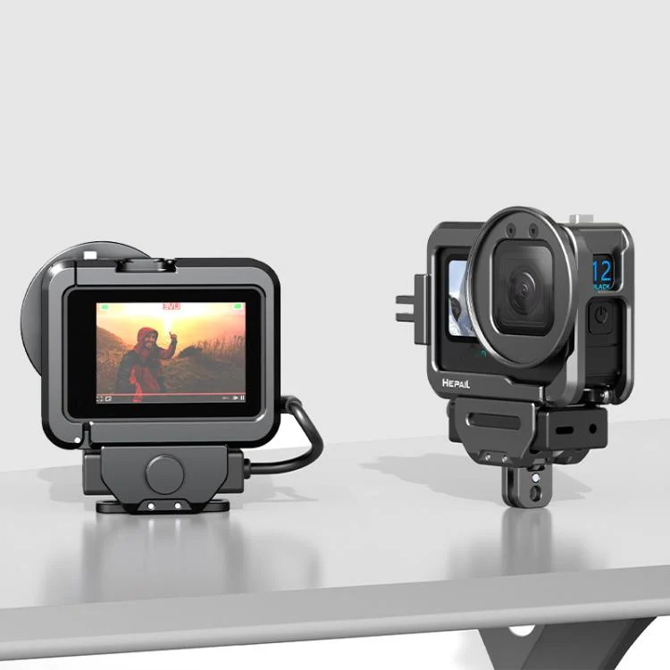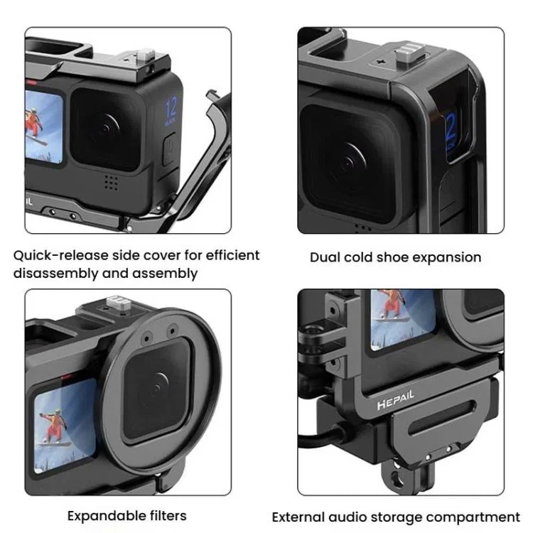 For GoPro HERO12 Black /11 Black /10 Black /9 Black HEPAIL C-G12 Metal Rabbit Cage With Dual Cold Shoe Connector