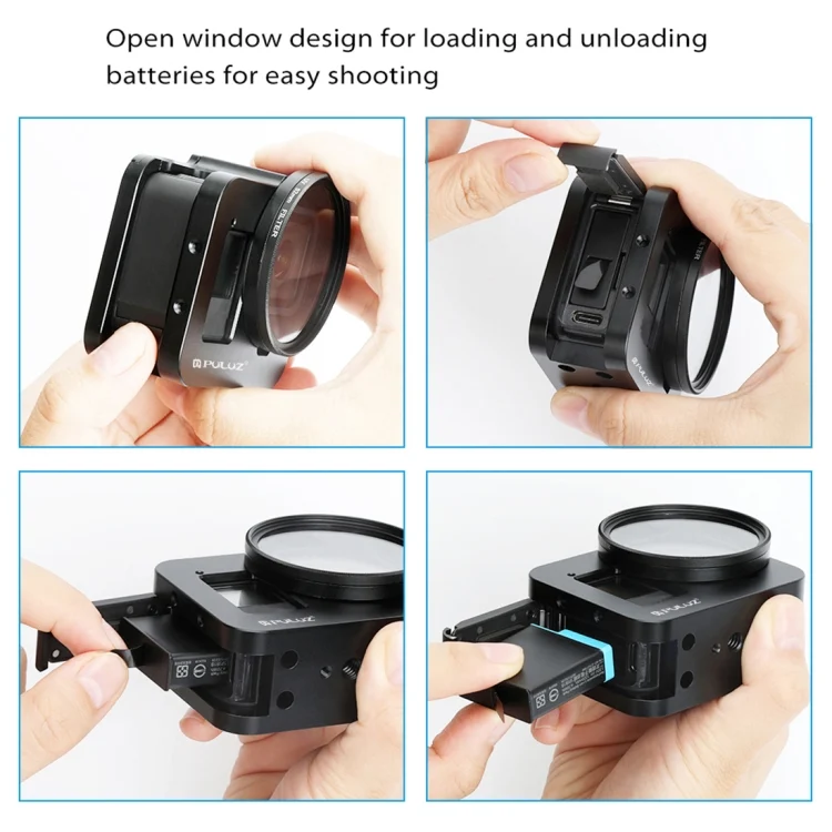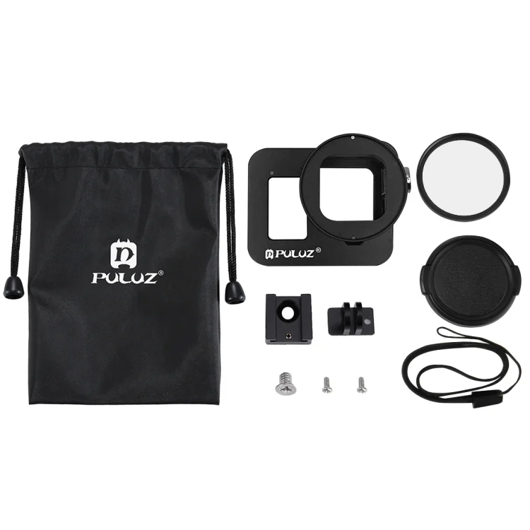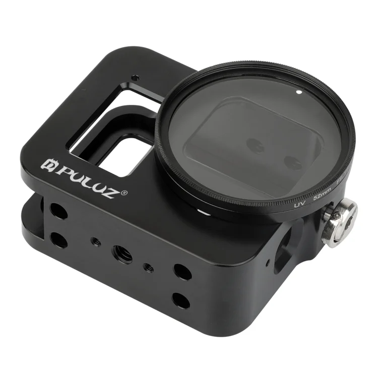 PULUZ Housing Shell CNC Aluminum Alloy Protective Cage with Insurance Frame & 52mm UV Lens for GoPro HERO8 Black