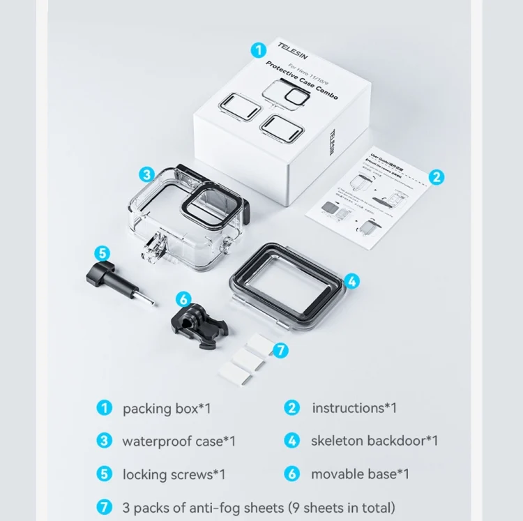 For GoPro Hero11 Black / HERO10 Black / HERO9 Black TELESIN Waterproof Case Full Scene Anti-Fog Underwater Diving Housing