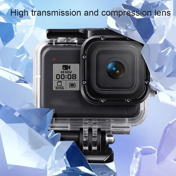For GoPro HERO8 Black 45m Waterproof Housing Protective Case with Buckle Basic Mount & Screw & Floating Bobber Grip & Strap & Anti-Fog Inserts