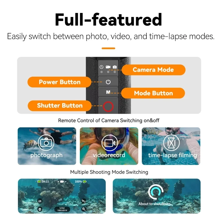 2. With remote control function, you can shoot/turn on and off/multi-mode switching, etc., easy to operate.