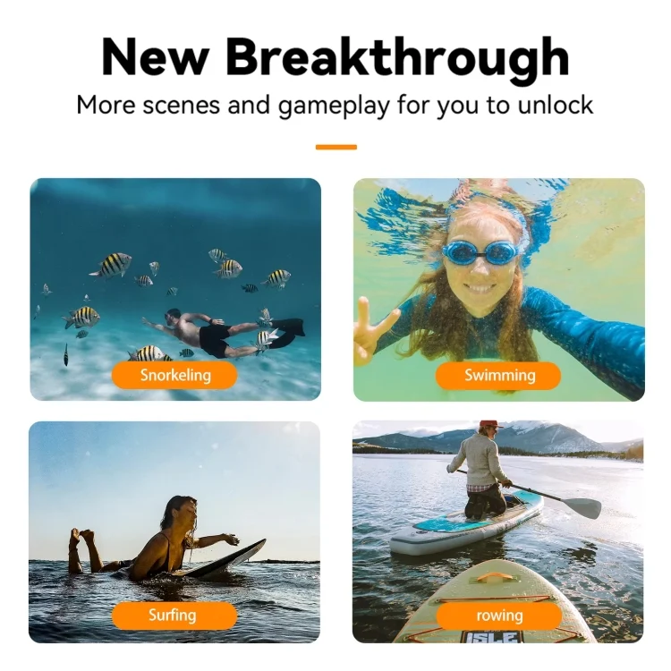 1. Bluetooth buoyancy stick, 15 meters waterproof depth, suitable for various water shooting, such as swimming, surfing, snorkeling, boating, etc.