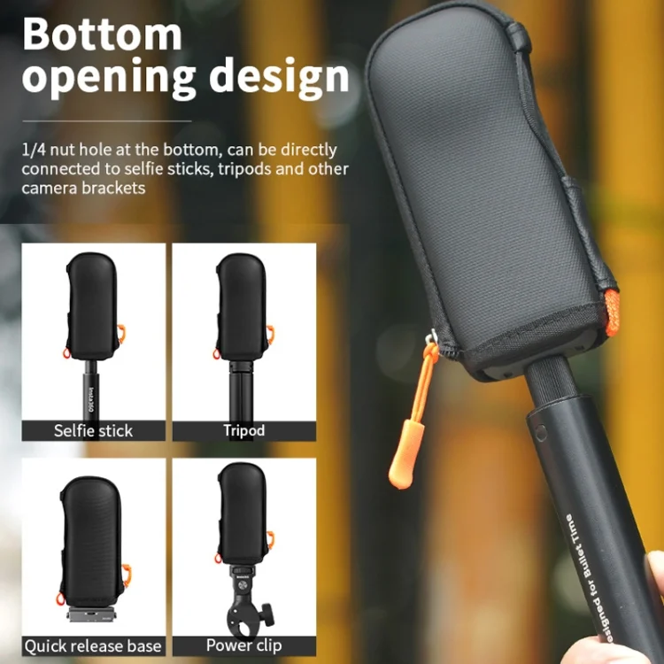 2. Bottom opening design, can be directly connected to selfie sticks, tripods and other camera brackets