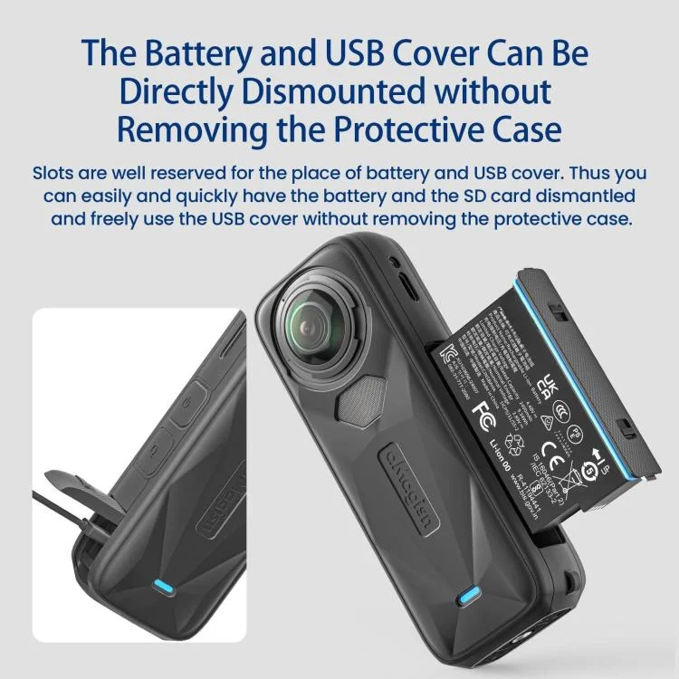 –The camera slides smoothly into the case via the dedicated battery slot for hassle-free setup. No complex steps needed.