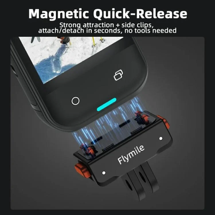 1. Plastic two-claw magnetic quick-release base, specifically designed for rapid attachment and detachment of action cameras, adaptable to multi-scenario creative shooting demands.