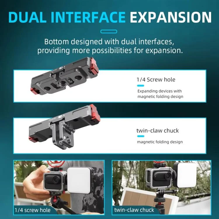5. Dual interface design at the bottom, 1/4 screw holes, folded up as a two-jaw bayonet, expanding more possibilities