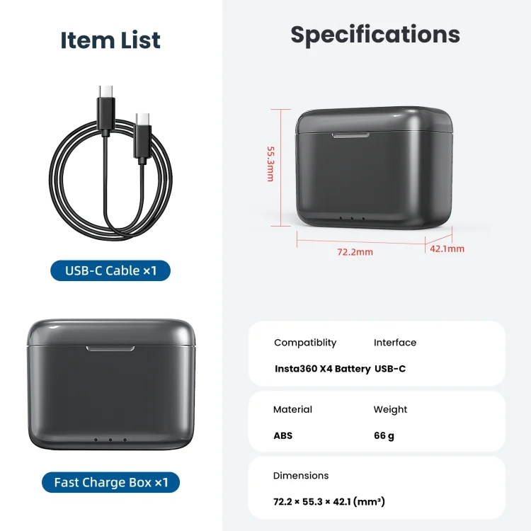 For Insta360 X4 AMagisn Battery Fast Charge Charging Box Sports Camera Accessories