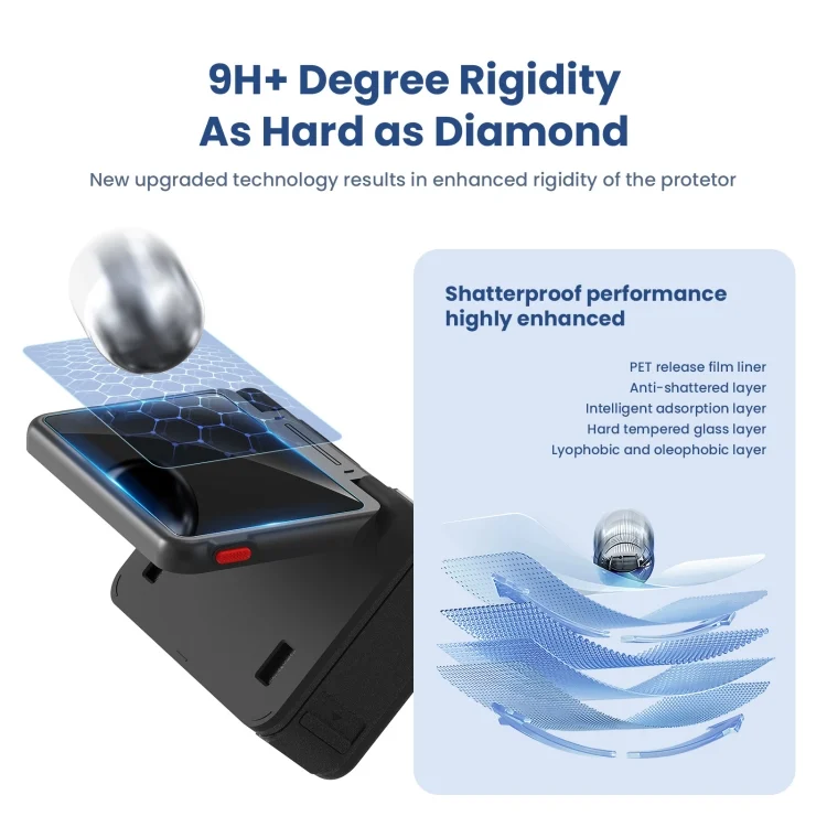 2. 9H+ high hardness, reinforced glass fiber material layer, 5 layers of pressure resistance, efficient explosion-proof