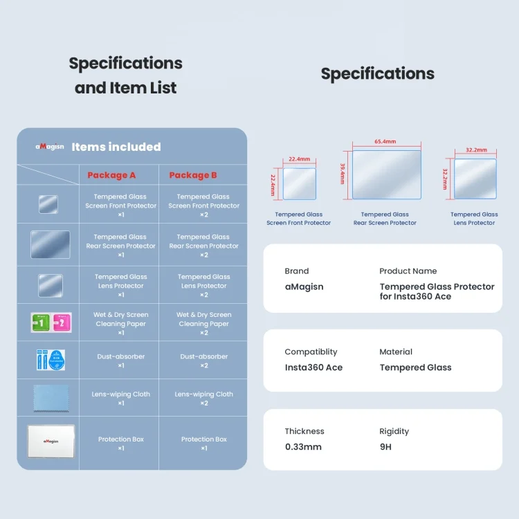 For Insta360 ACE aMagisn Tempered Film Protective Stickers Sports Camera Accessories