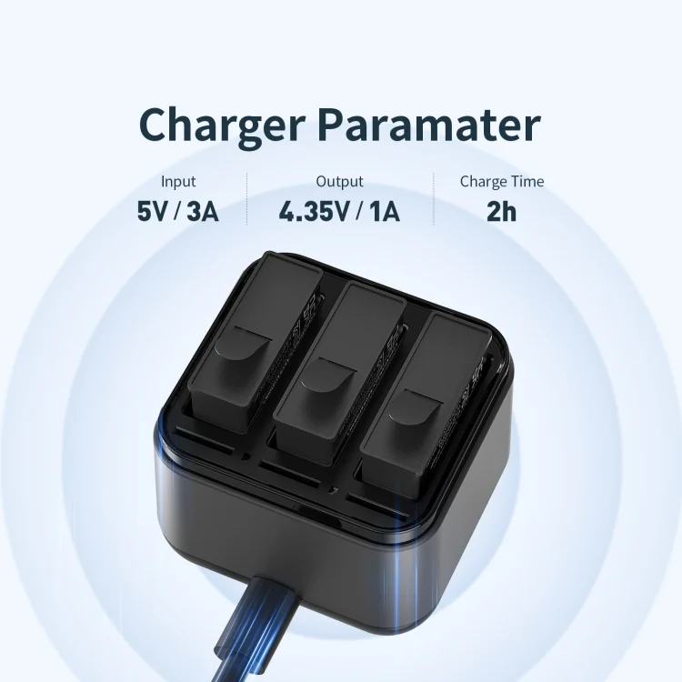 1. Individually powered triple charging slots, can charge three batteries at the same time