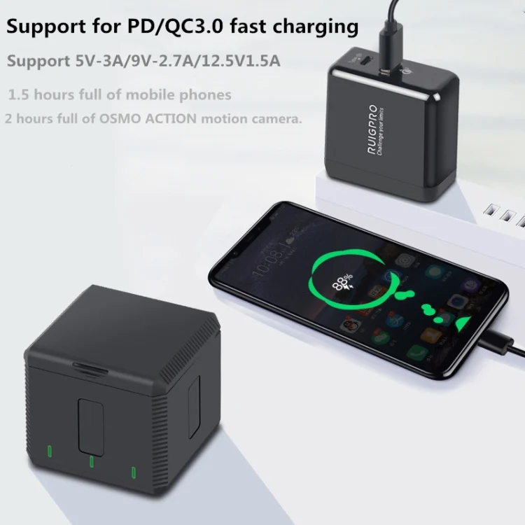 RUIGPRO 5V 3A QC 3.0 + PD Quick Charger Power Adapter for DJI OSMO Action, US Plug