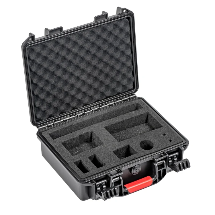 1. Specially designed for DJI ACTION 4, precisely fit the device, can accommodate: 1x ACTION 4 (with ACTION horizontal and vertical shooting protection frame), 1 x ACTION multi-functional battery storage box (with 3 x ACTION cold-resistant long-life batteries), 1 x 1.5m extension pole, 4 x quick release adapters, 1 x curved surface adhesive base, 1 x lens hood and 2 x locking screws.