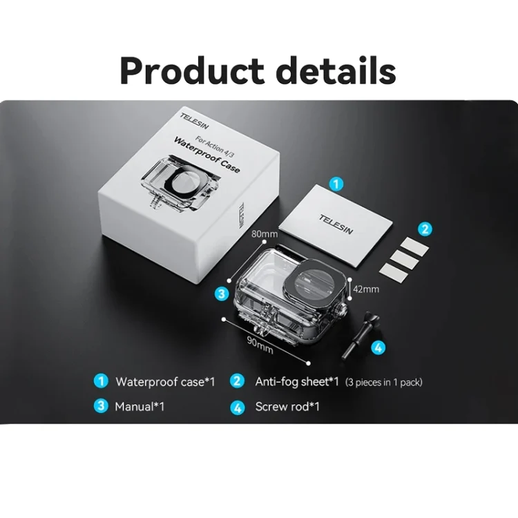 For DJI Osmo Action 3 / 4 TELESIN OA-WTP-003 45m Waterproof Shell Sealed Diving Case