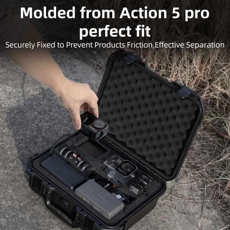 1. Exclusive design. A storage and protection box designed specifically for DJI Action 5 Pro series sports cameras, suitable for basic storage of cameras and a full set of accessories;
