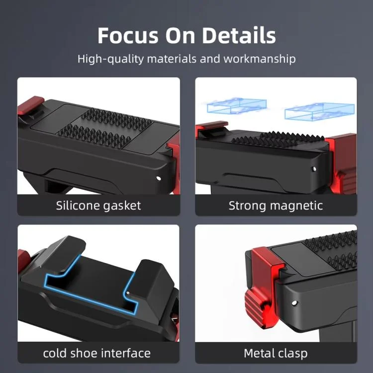 1. Magnetic Quick-Release Cold Shoe Mount designed specifically for DJI Osmo Action 5 Pro/Action 4/Action 3. Combines rapid mounting/dismounting with multi-device expansion. Constructed from glass fiber reinforced nylon and metal composite materials. Features a lightweight design at only 16.8g, balancing robustness and portability.