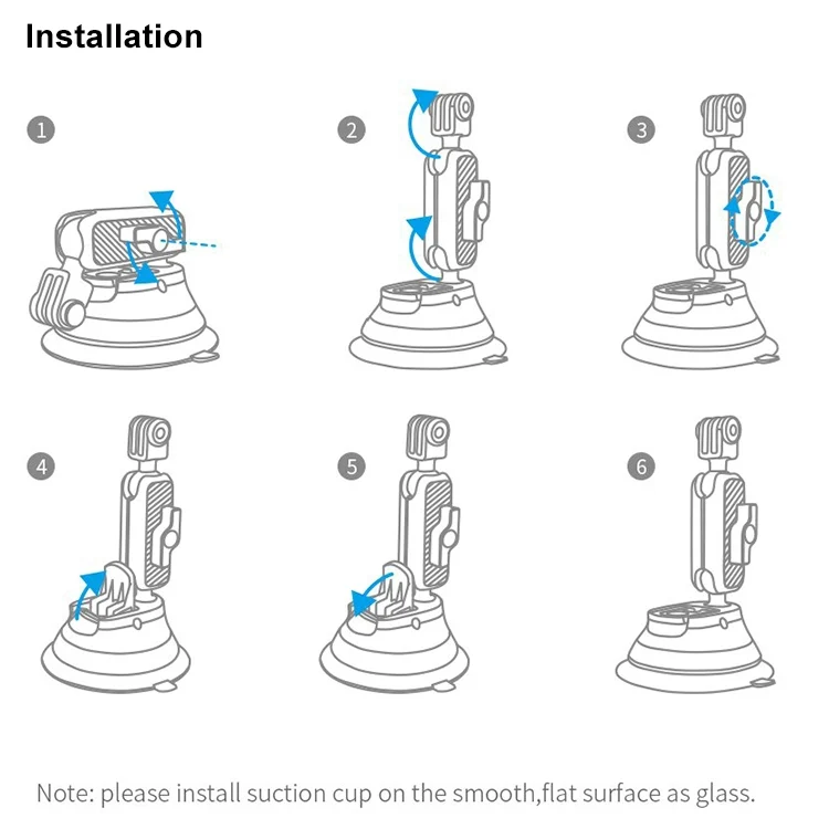 2. The suction cup bracket is suitable for fixing photographic equipment such as sports cameras, mobile phones, small photographic lights, microphones and other photographic accessories on smooth surfaces such as glass, smooth tabletops, and smooth tiled walls.