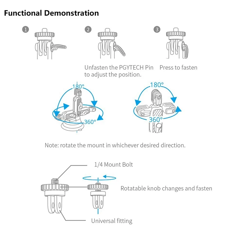 PGYTECH P-GM-132 Action Camera Suction Cup Phone Holder for DJI Osmo Action & GoPro 8/7