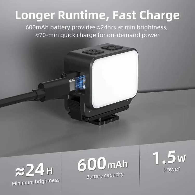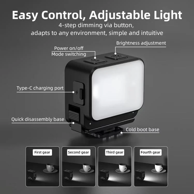 1. A magnetic quick-release fill light specially designed for DJI Action 5 Pro/Action 4, supporting three-color temperature dimming (3000K/4440K/8700K) and IPX4 water resistance, suitable for VLOG, night scenes and outdoor sports shooting.