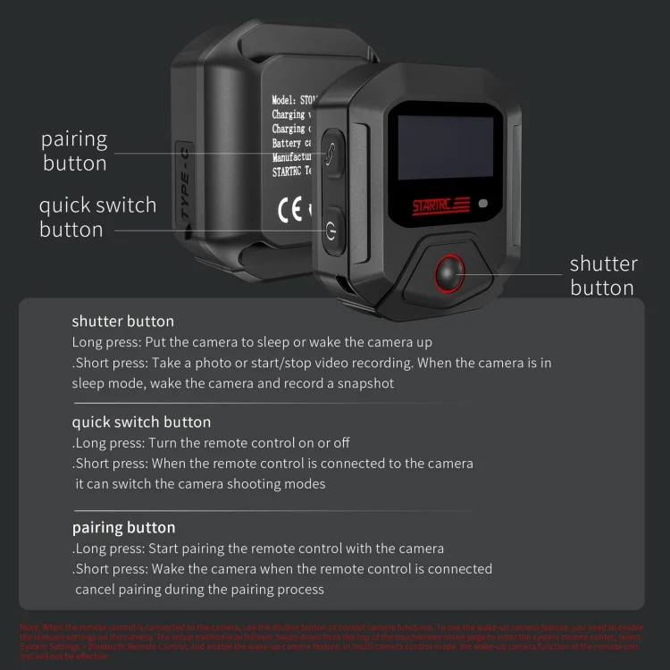 1. Exclusive design. This Bluetooth remote control with screen is specially designed for DJI Osmo Action series cameras. By connecting to the camera, you can control the camera remotely for shooting. It is suitable for DJI Action 4 / 5 Pro;
